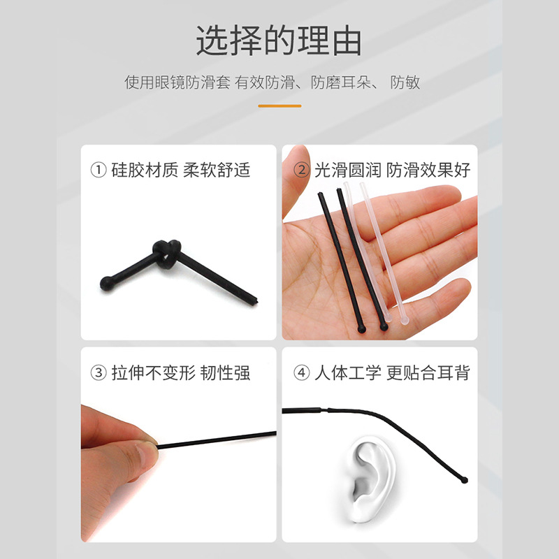 MATCHSTICK LEG COVERS FOR EYEGLASSES LEG COVERS ANTI-SLIP SILICONE LEG COVERS BLACK (火柴防滑硅胶脚套)