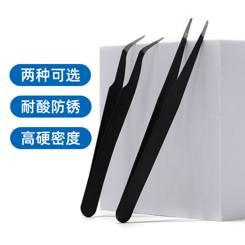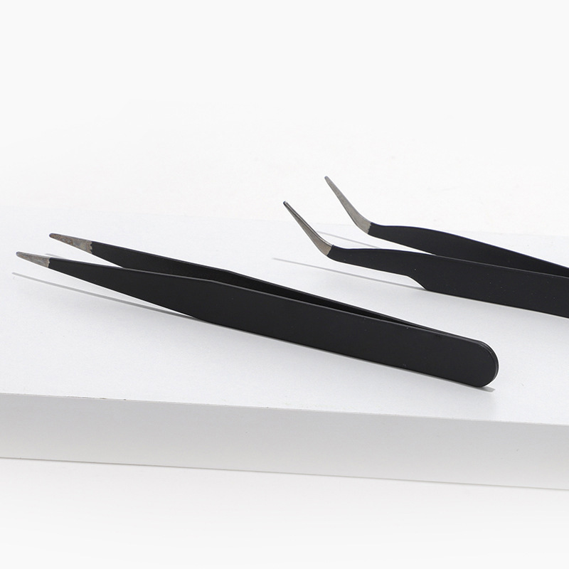TWEEZERS, BLACK STAINLESS STEEL, STRAIGHT HEAD